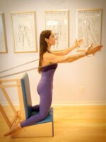 There are three Pilates chairs: the Arm Chair, High Chair, and Wunda Chair. The Arm Chair’s lighter springs make it safe for older students and pregnant students to work the upper body, while the angle of the seat of the Arm Chair makes it perfect for stretching students with tight lower backs. The High Chair, with its back support and handles, supports the spine during seated exercises and properly aligns the legs during standing exercises that work on strength and stability. The Wunda Chair is considered the original home gym and doubles as a piece of furniture. Inspired by the training of Chinese acrobats, Joseph Pilates took their platform and added a step with two springs that can be arranged in nine different ways, creating the ultimate workout challenge.