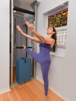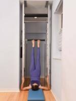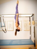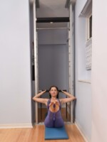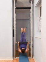 Gadar Pilates is proud to be the first (and only) Pilates studio in Sarasota, Florida equipped with a Guillotine apparatus! And the Guillotine at Gadar Pilates takes the exercise apparatus back to its historical roots because it is installed in a doorway just like Joseph Pilates’ home model which was called the Gym in a Doorway. The Guillotine is where experienced students take their work to the next level. With two springs attached to the movable bar from above or below, the biggest challenge is keeping the bar level as the feet or hands move it up and down. The Guillotine is also a great place for acrobatic students to work on skills performed hanging from the horizontal gym bar. The Pilates Guillotine gets its name from a Pilates exercise which is performed lying face up on the floor mat with the movable Guillotine Bar overhead. For the ideal placement, the student positions her throat directly beneath the bar overhead before putting her feet on the bar.