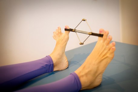 Joseph Pilates created brilliant innovations to address the specific needs of his clients. It has been said that the Ped-O-Pul was designed for a famous opera singer. Its design mirrors the spine and enhances posture, strength, and stability. According to Joseph Pilates, proper alignment begins with strong feet, so he created the 2×4, Toe Exerciser, and Foot Corrector to help students strengthen their feet and work on reflexology. The Long Pole is an accessory used for stretching the sides of the body, opening the shoulders, and “wringing out the lungs.” The Sand Bag works to build strength in the forearms, wrists, hands, and fingers. The Push-Up Devices were adapted from gymnastics (similar to the even parallel bars) to increase range in push-ups while eliminating pressure in the wrists. The Breathing Device was designed to increase breath and circulation in the body while building stamina. Although not pictured, Gadar Pilates is also equipped with the foldable Pilates Mat with Dowels, Swedish Bars, the traditional and mini Magic Circles, Neck Tensometer, Finger Corrector, Joe’s Posture and Poise apparatus, multiple vintage hand weights, and a reproduction of Joseph Pilates’ Archival Weighted Shoes with authentic vintage shoe plates made from weighted metal.